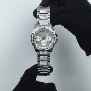 Elevate your style with the Guess W0799G1 Frontier Silver Men's Watch, featuring a dazzling design with crystals, chronograph, and date function, perfect for any occasion.